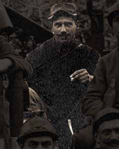 Sa main droite porte un filet bien ajusté : serait-ce sa plaque d'identification ? En ce temps là il n'y en a qu'une au poignet.